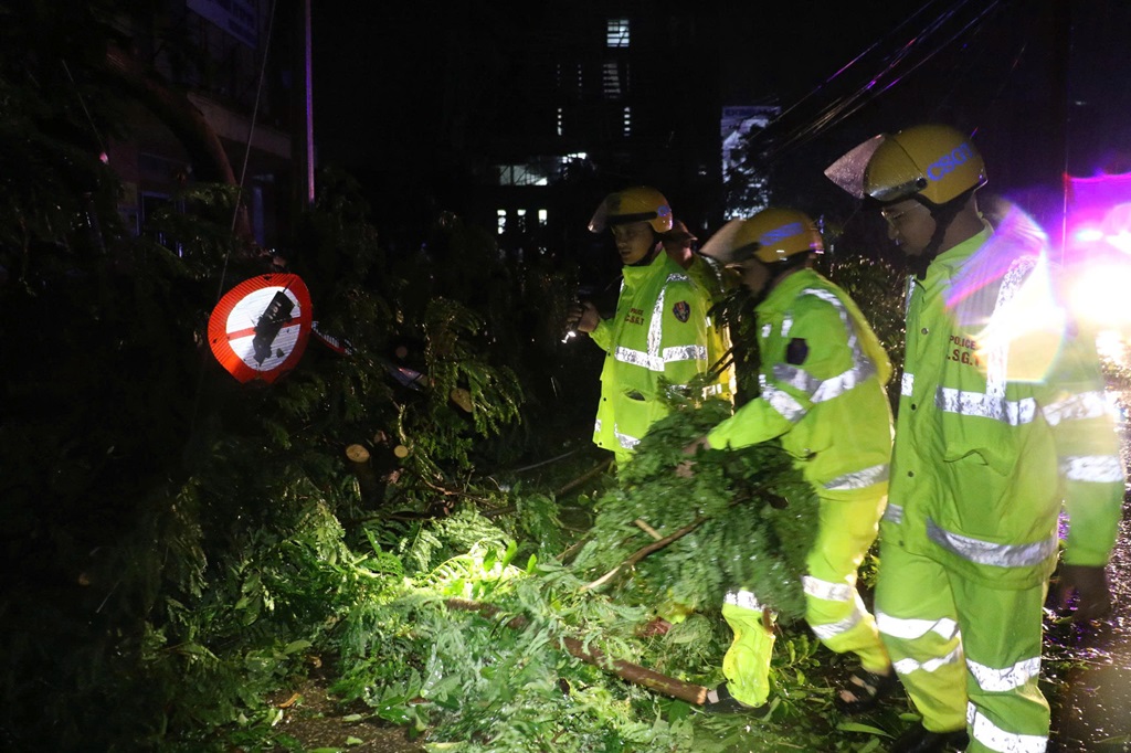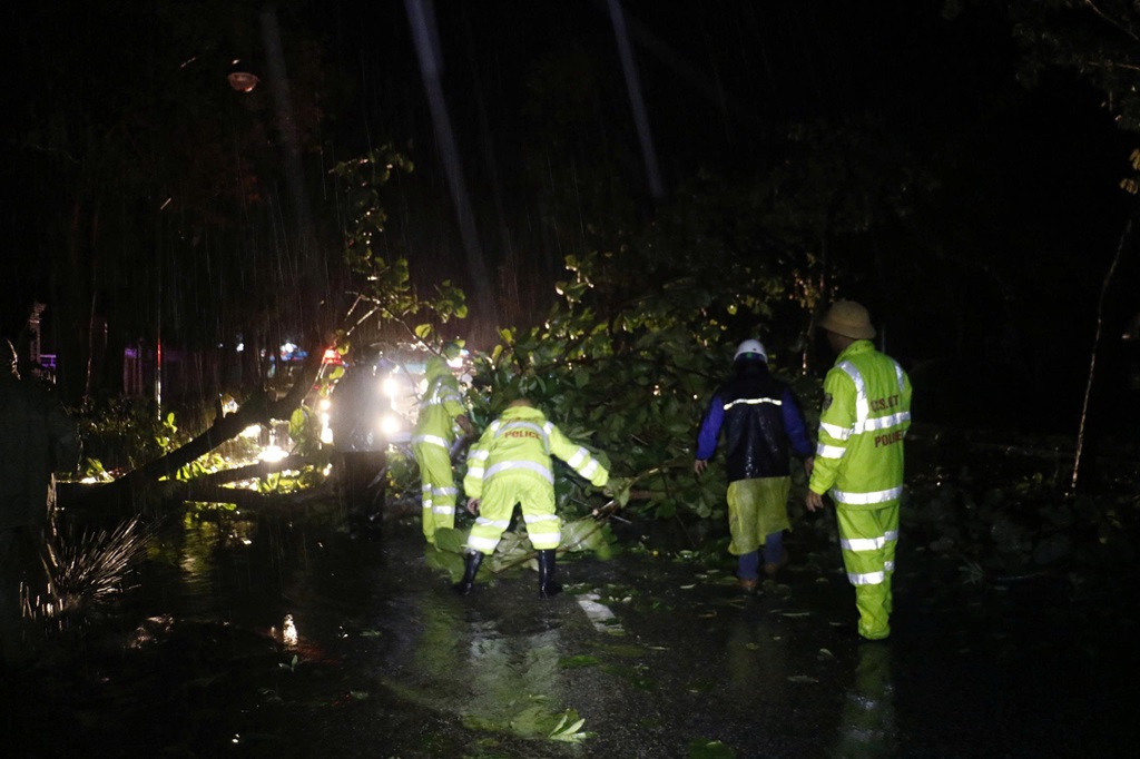 Ngay trong đêm, dưới sự chỉ đạo của Lãnh đạo Công an tỉnh, Tổ CSGT thành phố Vinh (cũ), Đội CSGT đường bộ số 4, thuộc Phòng Cảnh sát giao thông đã phối hợp với các đơn vị chức năng nhanh chóng có mặt tại các vị trí cây ngã đổ, giải tỏa hiện trường, hướng dẫn, phân luồng giao thông, giúp người dân đi lại an toàn.