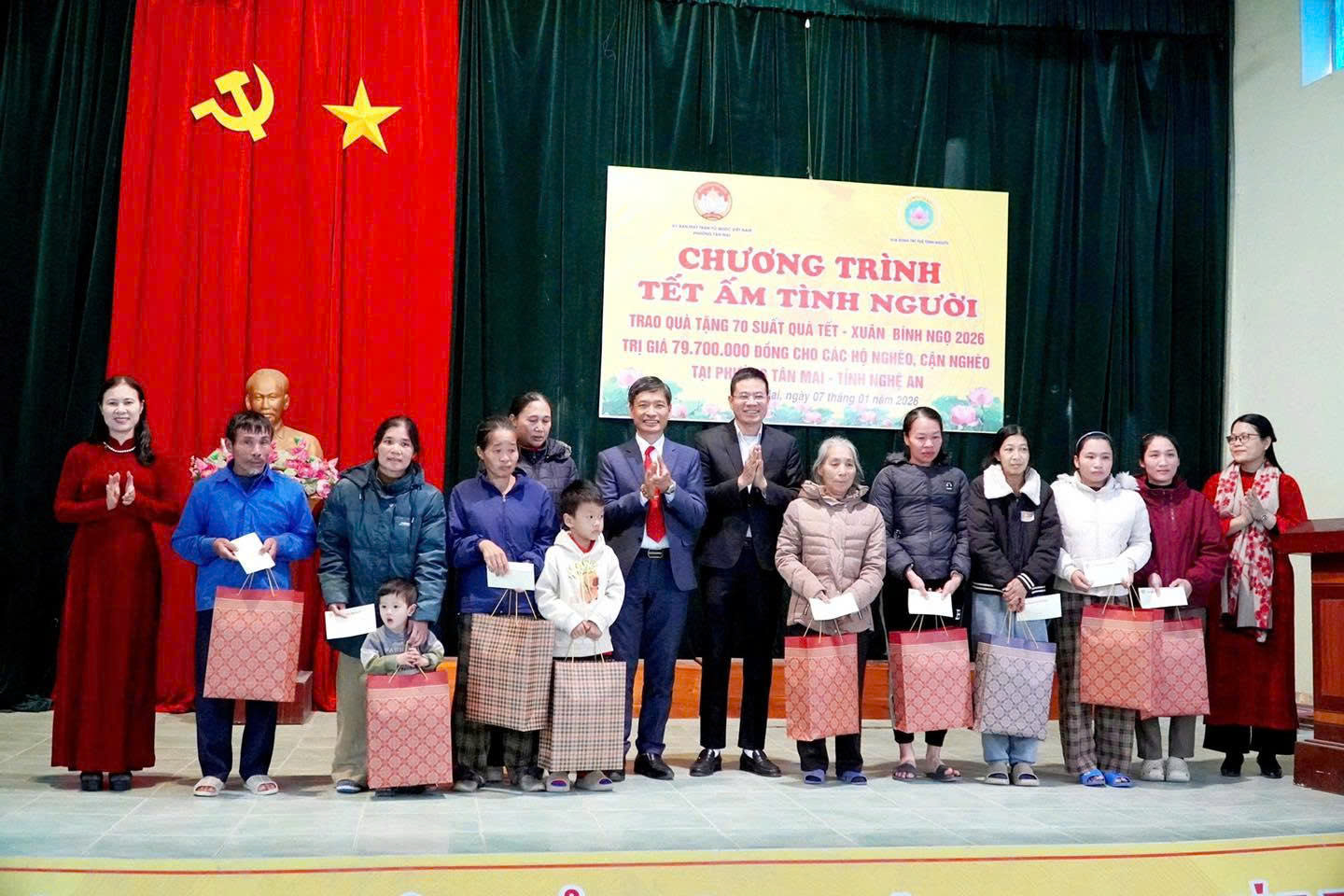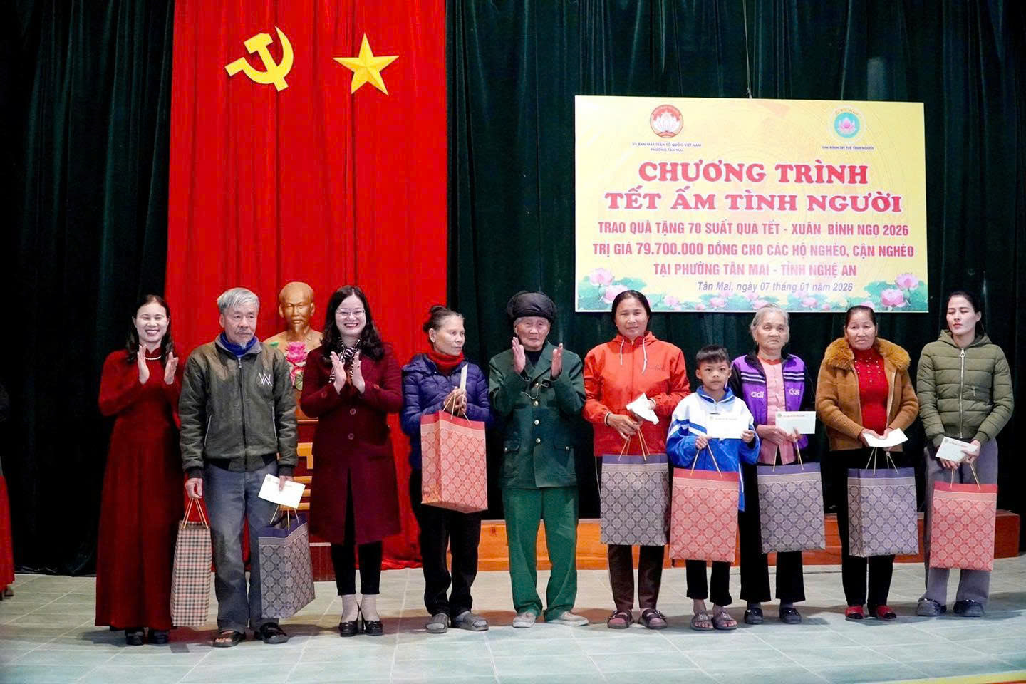 Chiều ngày 7/1, Ủy ban MTTQ Việt Nam phường Tân Mai phối hợp với Hội đồng hương dòng họ Hoàng gốc Quỳnh Lập (cũ) tại Bắc Ninh tổ chức chương trình “Tết ấm tình người”, trao tặng 100 suất quà Tết cho các hộ nghèo, cận nghèo trên địa bàn Quỳnh Lập (cũ), nay thuộc phường Tân Mai.